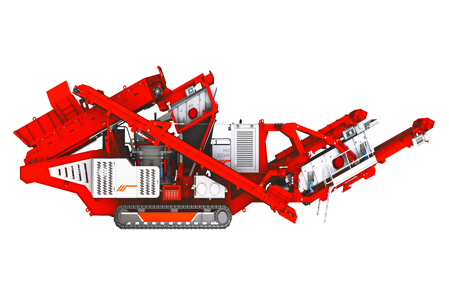 La machine principale utilise un cône multicylindre, un écrasement laminé, et est équipée d’une machine d’alimentation à grand couple et à faible vitesse pour garantir une alimentation uniforme, principalement pour le concrassement secondaire, adaptée aux roches de dureté moyenne et élevée. L’équipement compact offre un déplacement pratique, une grande puissance d’écrasement, une faible usure et une grande fiabilité.