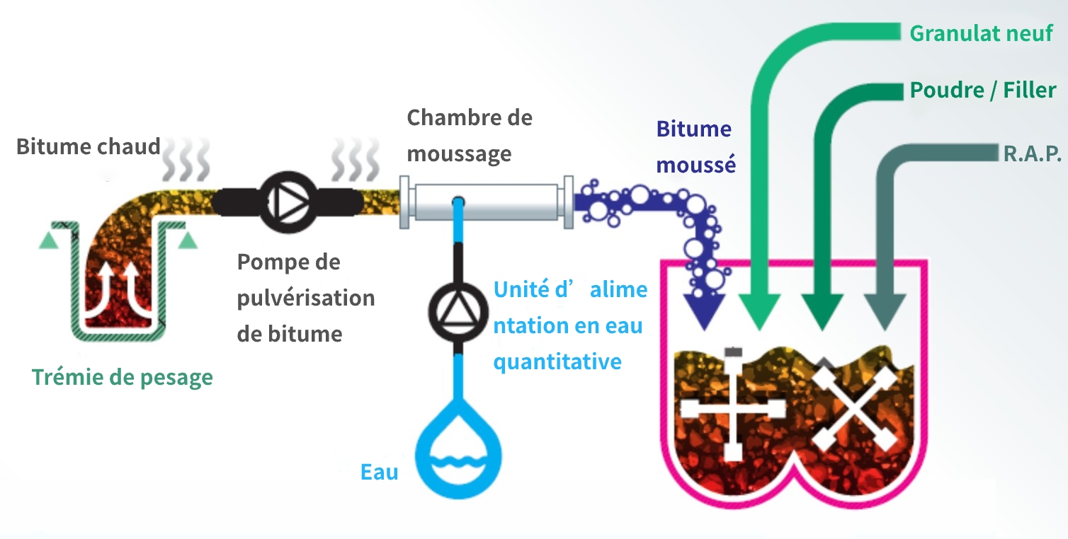 Dispositif de mousse pour enrobé tiède